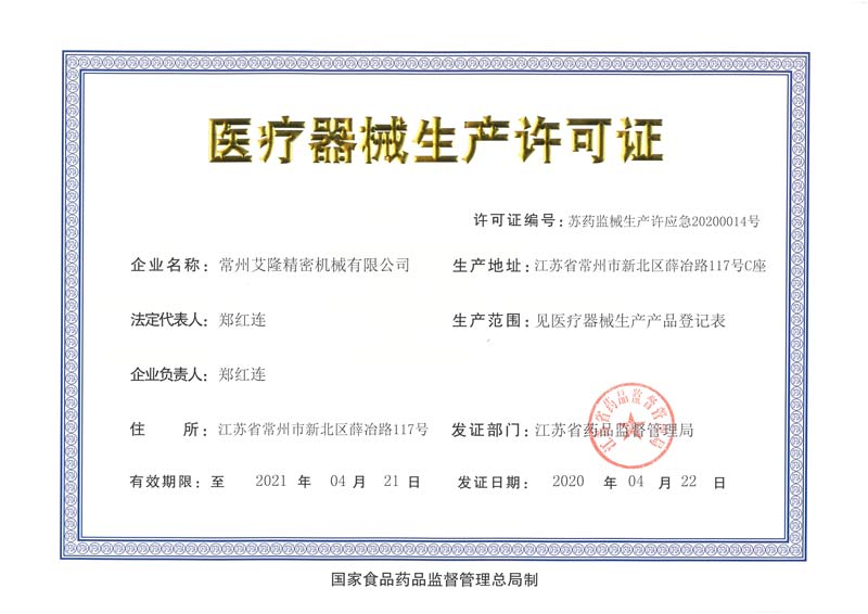 醫(yī)療儀器生產(chǎn)許可證